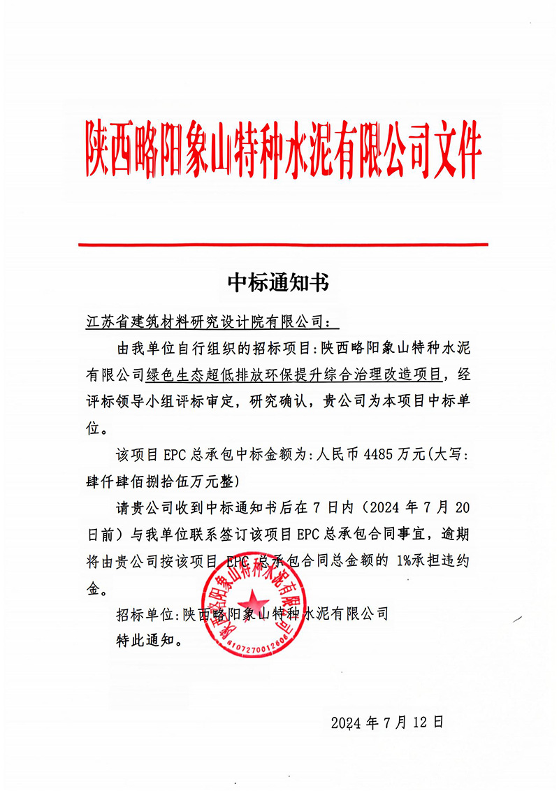 喜報丨我院中標陜西略陽象山特種水泥有限公司綠色生態超低排放環保提升綜合治理改造EPC 工程總承包項目